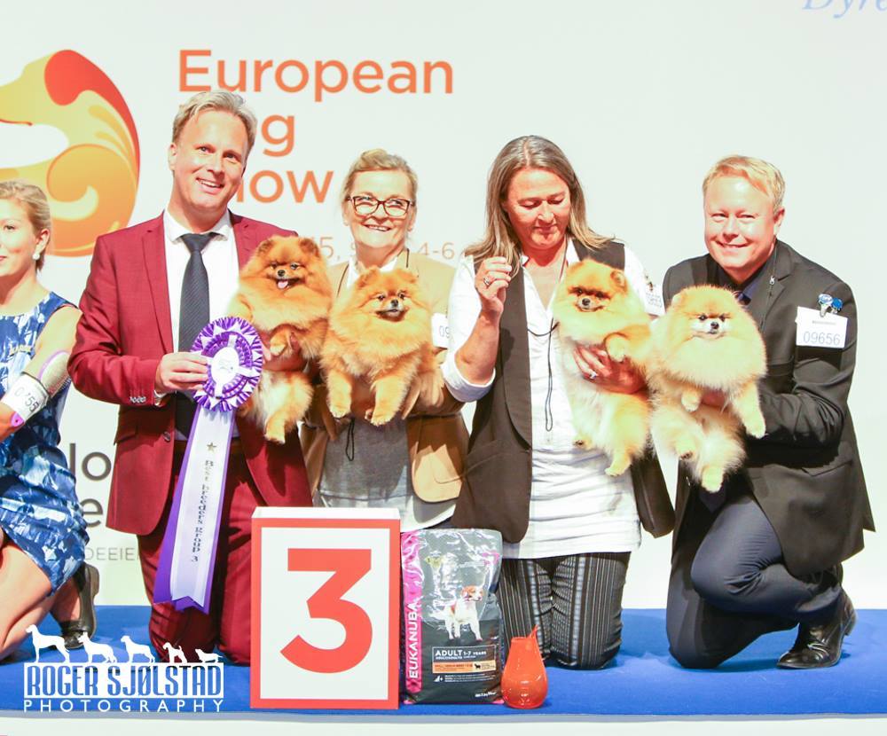 The dogs above more or less are the foundation dogs of the Tiny Jewels poms. Together my dogs have won over 300 times BEST IN SHOW, Pomeranian of the Year 25 times 1991 – 2018, Dog of the Year all breeds both in Norway and Denmark, Veteran of the Year all breeds, Breeder of the Year all breeds # 2, Champion of Champions x 2, Veteran of Veterans in Sweden. My dogs hold the record for winning the most EUROPEAN- and WORLD WINNER titles of all time in the breed since winning a title the first time I showed at such a show in 1996. One of my bitches even won CC at Crufts.